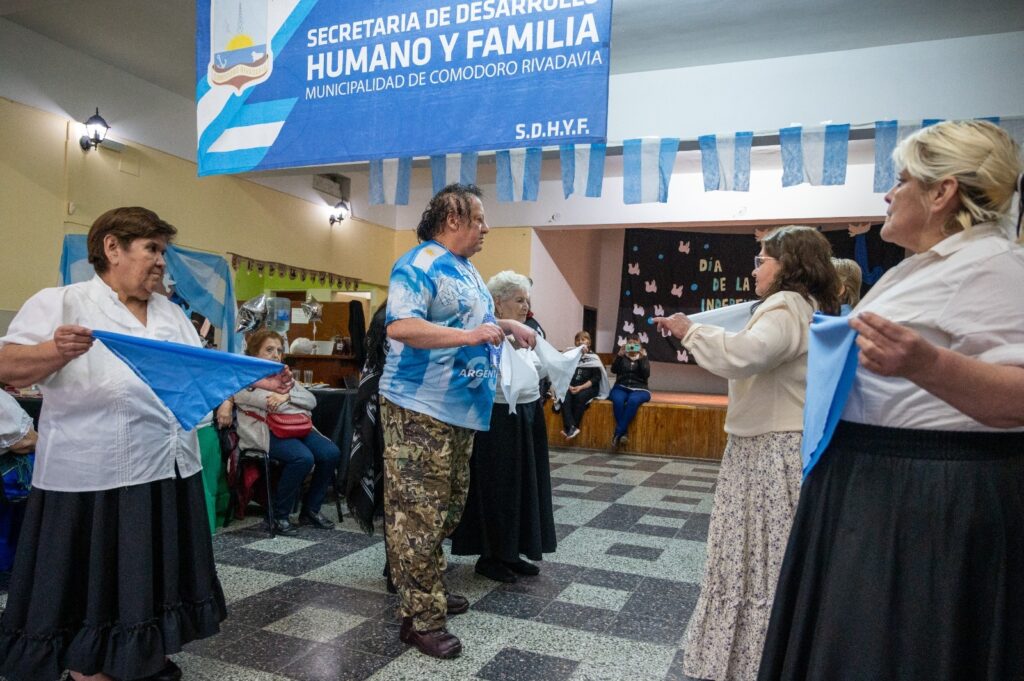 Este martes, en la sede de la Asociación Vecinal de barrio Presidente Ortiz, organizado por la Dirección de Adultos Mayores del Municipio, más de 50 adultos mayores de distintos grupos socio-recreativos de Km. 5, Km. 8 y Diadema Argentina, llevaron adelante una celebración en conmemoración por el 209° Aniversario de la Independencia. De la actividad participaron el secretario de Desarrollo Humano y Familia, Ángel Rivas, y la subsecretaria Julieta Miranda.