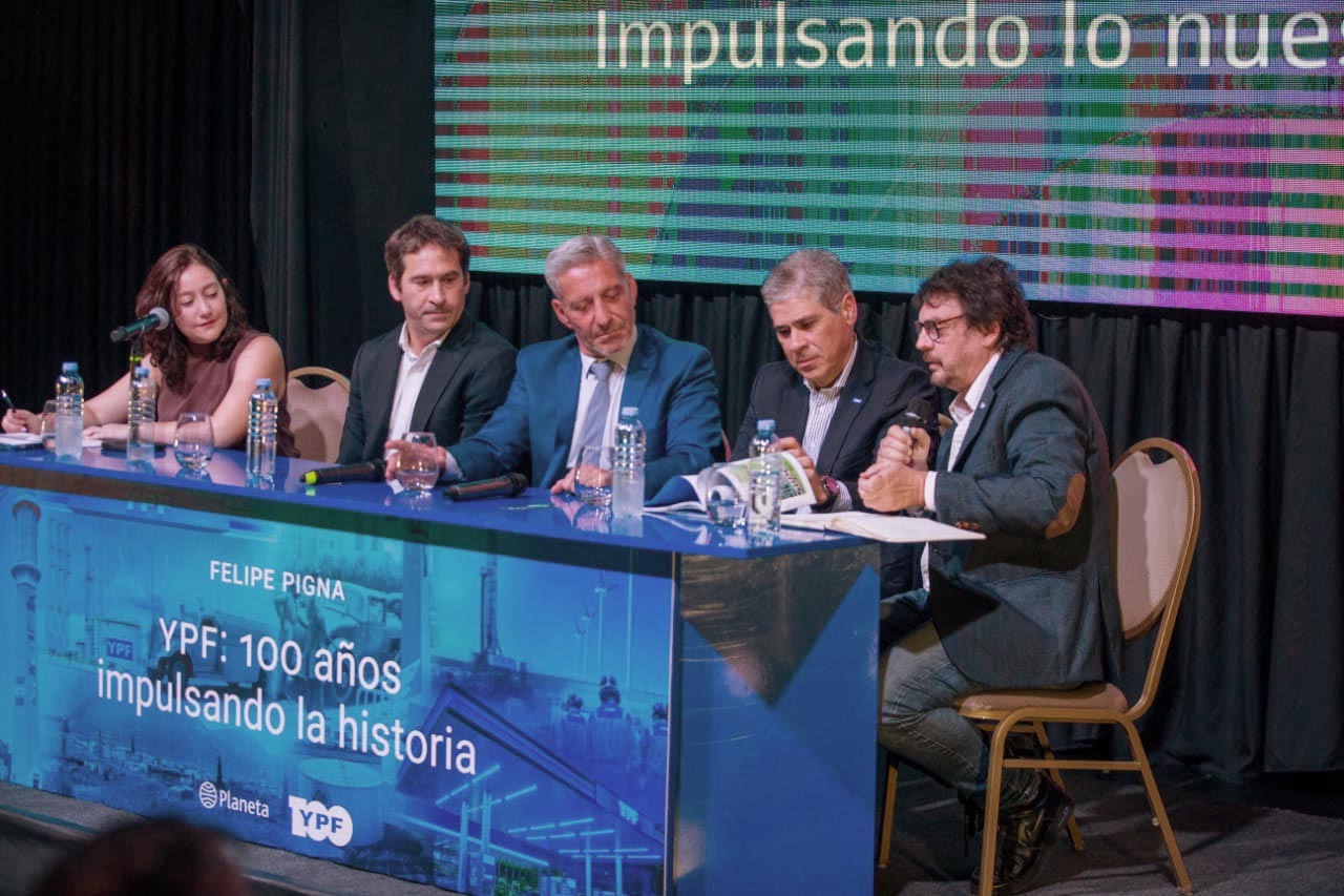 En el marco de los Cien Años de la empresa YPF, el gobernador del Chubut Mariano Arcioni participó ayer del lanzamiento del libro “YPF 100 años impulsando la historia”, del reconocido escritor Felipe Pigna. Y junto a Pablo González, el presidente del directorio de la empresa y el intendente Juan Pablo Luque resaltó las distintas acciones enmarcadas en la historia petrolera; la vinculación con la política y el protagonismo de los trabajadores como defensores del recurso.