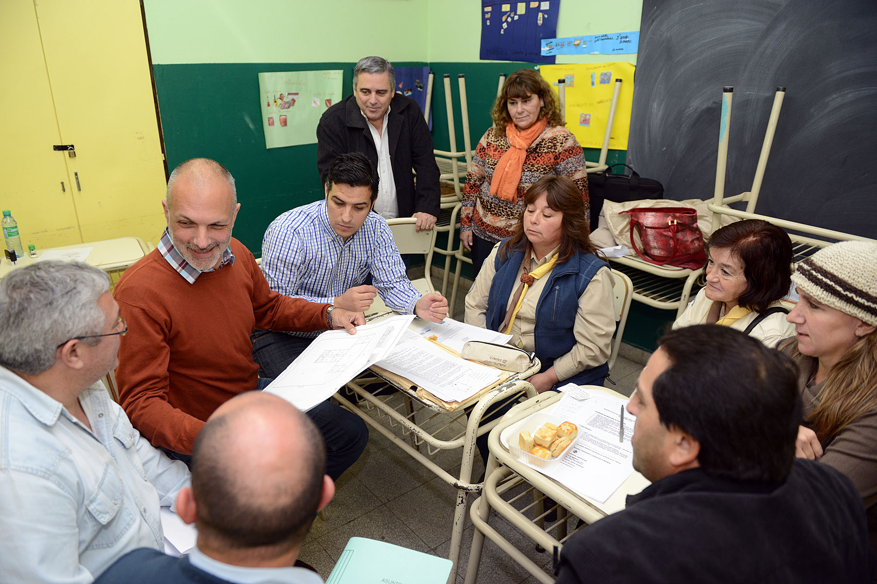 Acompañados por el intendente de Sarmiento, Sebastián Balochi, el mandatario provincial y su gabinete atendieron instituciones, cooperativas, clubes, asociaciones vecinales y vecinos que se presentaron en el establecimiento escolar a manifestar alguna inquietud o requerimiento.
