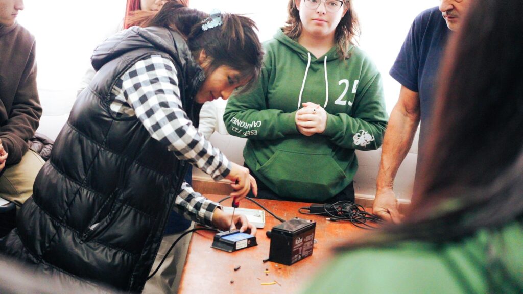 A partir de esta norma pionera, que promueve la integración de saberes tecnológicos en el sistema educativo, se instaló un cargador solar USB de uso comunitario en el predio del gimnasio municipal, diseñado y montado por los propios alumnos en un taller técnico-práctico.