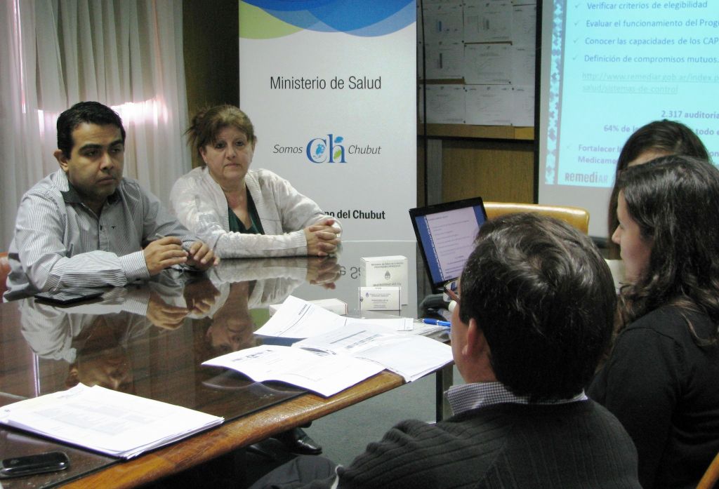 Los subsecretarios de Programas de Salud y de Planificación, Sergio Jaime, y de Capacitación del Ministerio de Salud del Chubut, Judith Jozami, encabezaron en Rawson una reunión de la que participaron referentes del Programa Remediar del Ministerio de Salud de la Nación que tuvo por objetivo avanzar en la implementación del sistema de receta electrónica para medicamentos genéricos en el Primer Nivel de Atención de la Salud, que comprende a los centros de salud y hospitales rurales de la provincia.