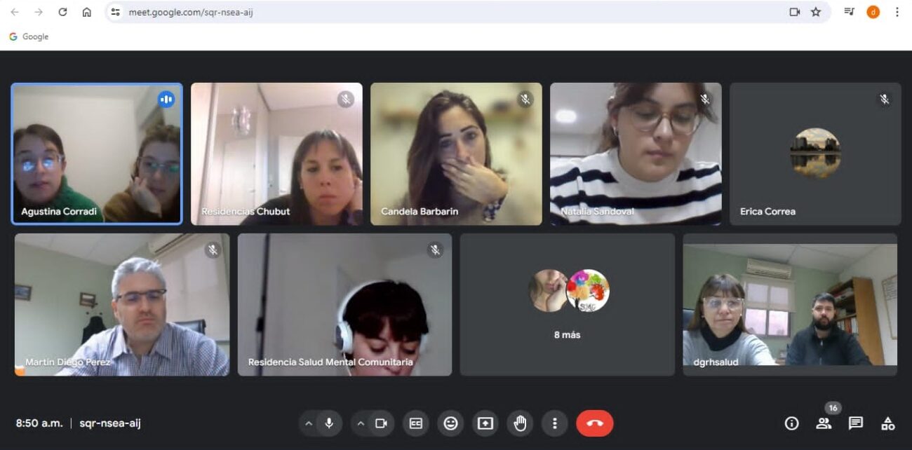Del encuentro virtual participaron el subsecretario de Hospitales, Martín Pérez; la directora general de Recursos Humanos, Alejandra Araujo; el asesor legal, Nahuel Martín; y la jefa del Departamento Provincial de Residencias del Equipo de Salud, Jimena Raspini.