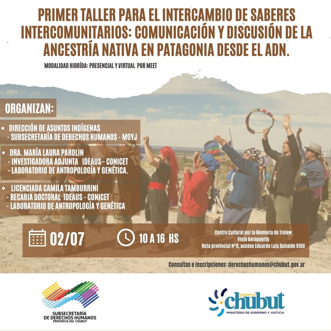 El Gobierno del Chubut, a través de la Subsecretaría de Derechos Humanos que conduce Carla Sánchez Galindo, realizará el primer encuentro relacionado a la temática ancestría indígena. Se trata de una actividad organizada por investigadoras del IDEUS-CONICET en conjunto con la Dirección de Asuntos Indígenas del Gobierno Provincial. El encuentro preliminar tendrá lugar en el Centro Cultural por la Memoria de la ciudad de Trelew de 10 a 16 horas, ubicado sobre Ruta Provincial Nº 8, por acceso Eduardo Luis Duhalde N° 9100.