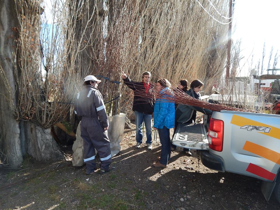 Se trata de una nueva entrega de estacas (varas) de tamariscos, olivos de bohemia, pinos, fresnos, acacias y olmos provenientes del vivero de CORFO Dolavon, luego de la primera entrega de plantines de álamos, pinos y cipreses realizada en el mes de junio.
