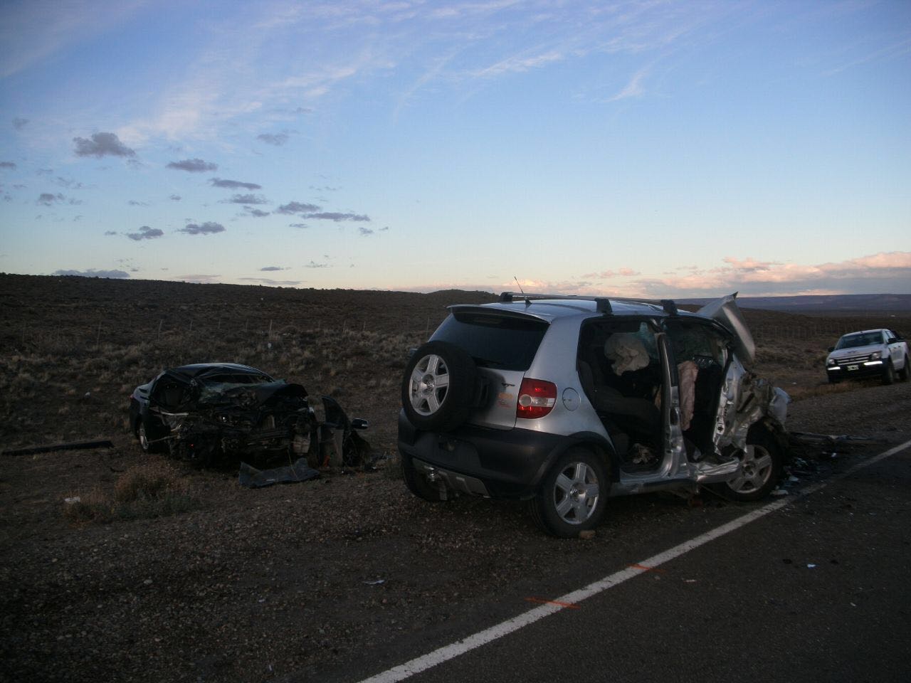 El Toyota Corolla era conducido por Hugo Aliro Ruiz, de alrededor de 60 años y oriundo de Comodoro Rivadavia. Viajaba a esta ciudad sin acompañantes. Mientras, en la Volkswagen Cross Fox se desplazaba una familia sarmientina que regresaba a esa localidad. El rodado era conducido por Marcelo Helfer, acompañado por su esposa María Urriategui y por sus hijos de 4 meses y 5 años quienes habrían ido en el asiento trasero, indicaron fuentes policiales.