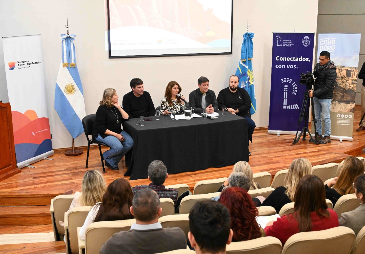 Allí presentaron el plan la subsecretaria de Conservación y Áreas Protegidas, Nadia Bravo; la magister Maricel Giaccardi, quien trabajó en la coordinación de los talleres para la elaboración de este documento; el gerente del Ente Comodoro Turismo, Eduardo Carrasco; el coordinador del proyecto ANP Rocas Coloradas por parte de la UNPSJB, Javier Tolosano; y el diputado provincial, Fabián Gandón.