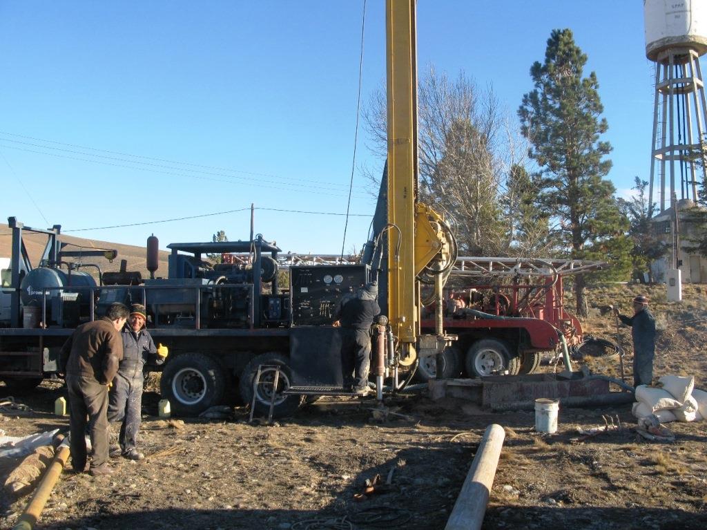 Debido a la amplia capa de pedregullo que hay que atravesar se decidió usar un equipo de golpe y el auxilio de caños de acero que se van enterrando a medida que progresa la perforación y que evitan que ésta se derrumbe al extraer la herramienta para encamisar el pozo.