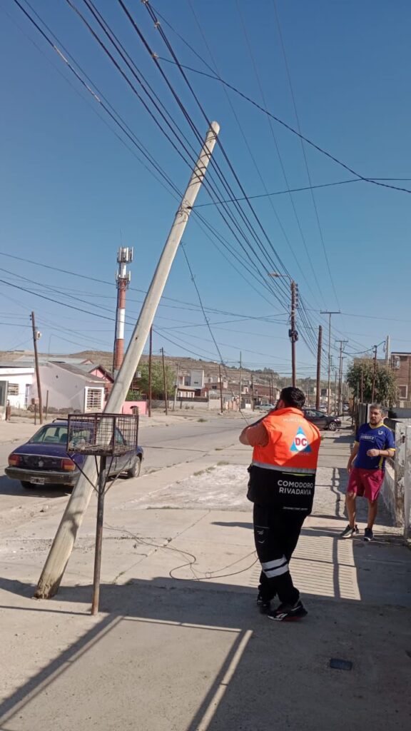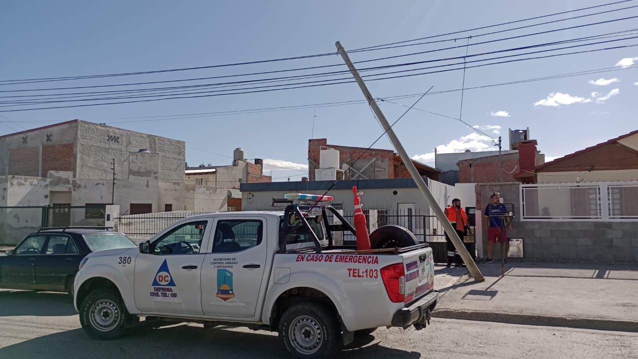 Asimismo, se intervino en diversos lugares, donde postes de luz fueron inclinados por las fuertes ráfagas. También resultaron afectados carteles y tramos de cableado en la zona céntrica.