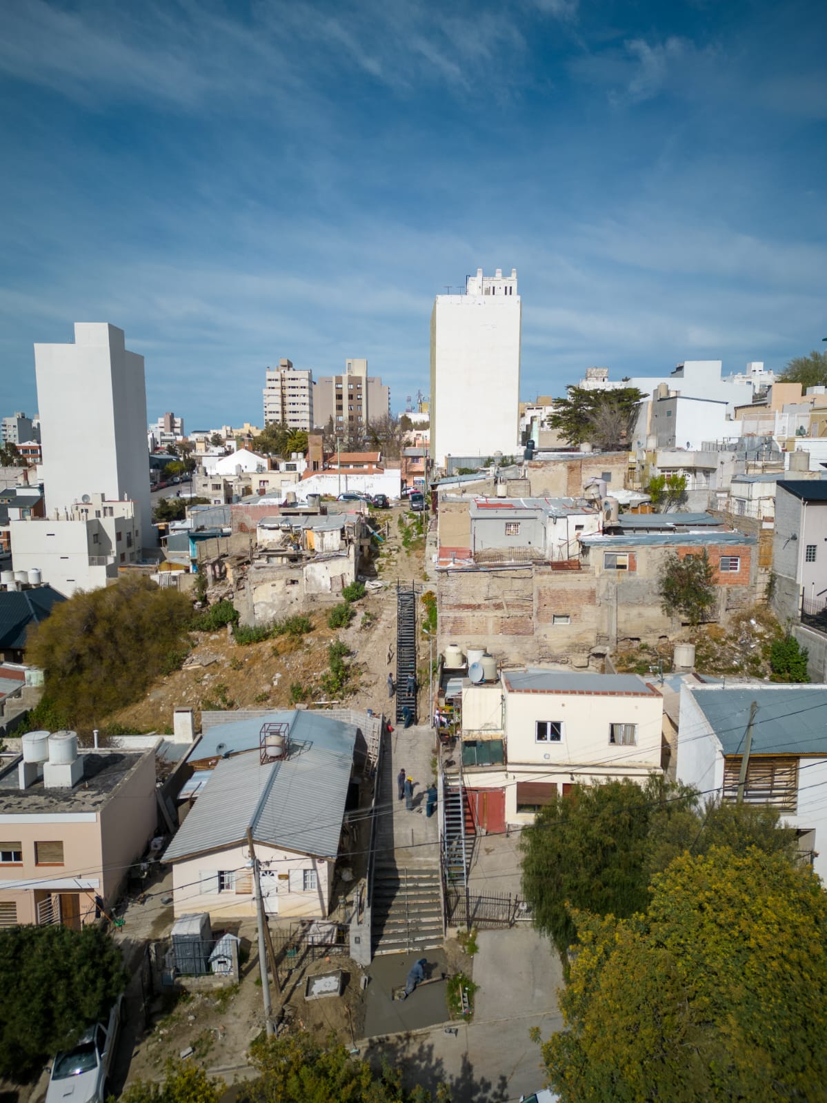La obra contempló la construcción de un muro de contención, la consolidación de instalaciones sanitarias de cloaca y agua, así como la ejecución de una escalinata de gran desarrollo que salva un desnivel de más de cuatro metros y una nueva vereda de conexión con calle Sarmiento. Los trabajos se suman a otras tareas similares que se han realizado en los barrios Pietrobelli, Ceferino y Moure.