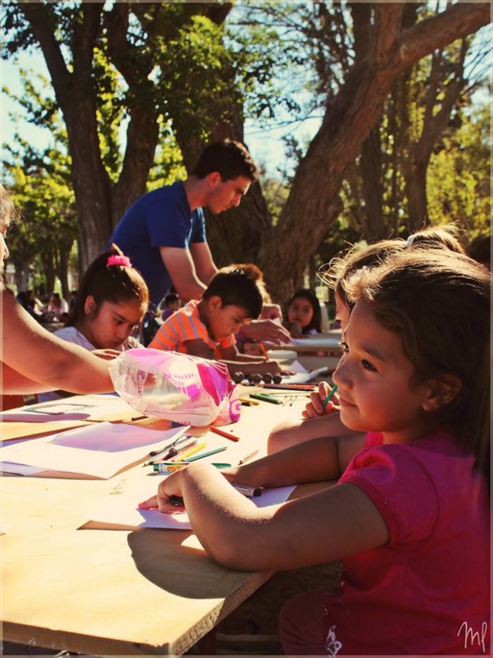 En la localidad de Sarmiento se están desarrollando talleres al aire libre, propuestos por el municipio local, a través de la Secretaría de Cultura.
