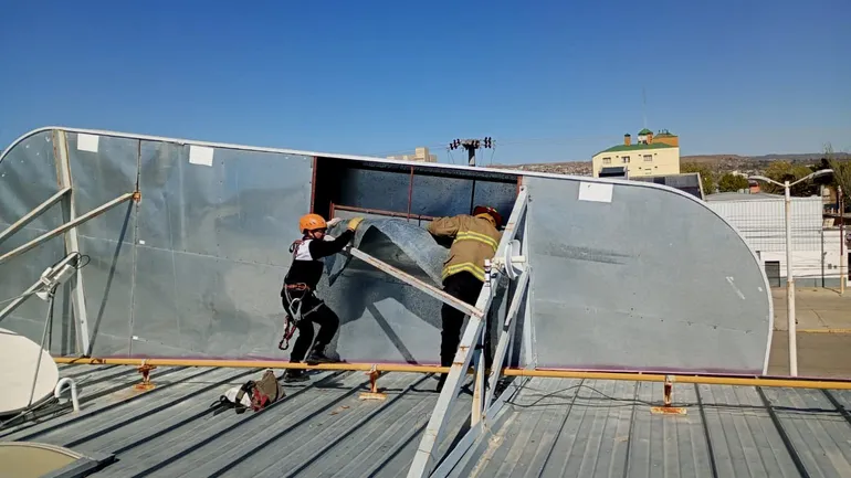 Al lugar concurrieron bomberos de la Unidad Quinta que, en riesgosa misión, se treparon al techo para anclarlas, antes de que se produjera su voladura.
