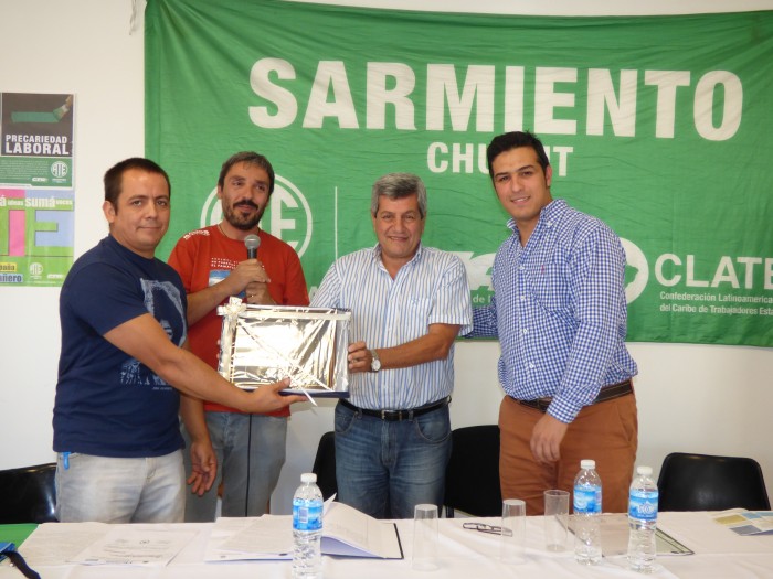 El Jefe Comunal hizo entrega de la resolución N° 196/15, a través de la cual se declaró como “Huésped de Honor”, al Diputado Nacional por la Unidad Popular, Víctor De Gennaro, hizo entrega de una placa recordatoria para la biblioteca y obsequió productos regionales.