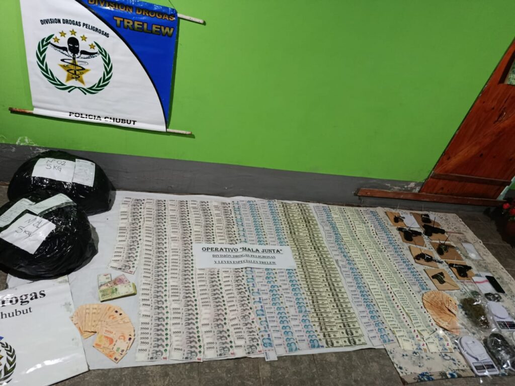La causa denominada «Mala Junta», que llevó cinco meses de investigación, surgió a raíz de una denuncia anónima contra un individuo de la ciudad de Trelew que se dedicaba a la comercialización de estupefacientes. A lo largo del procedimiento se pudo establecer que este hombre, ahora detenido junto a otras siete personas, cumplía el rol de distribuidor zonal de cocaína y marihuana, abasteciendo constantemente a diferentes puntos de ventas por toda la ciudad.