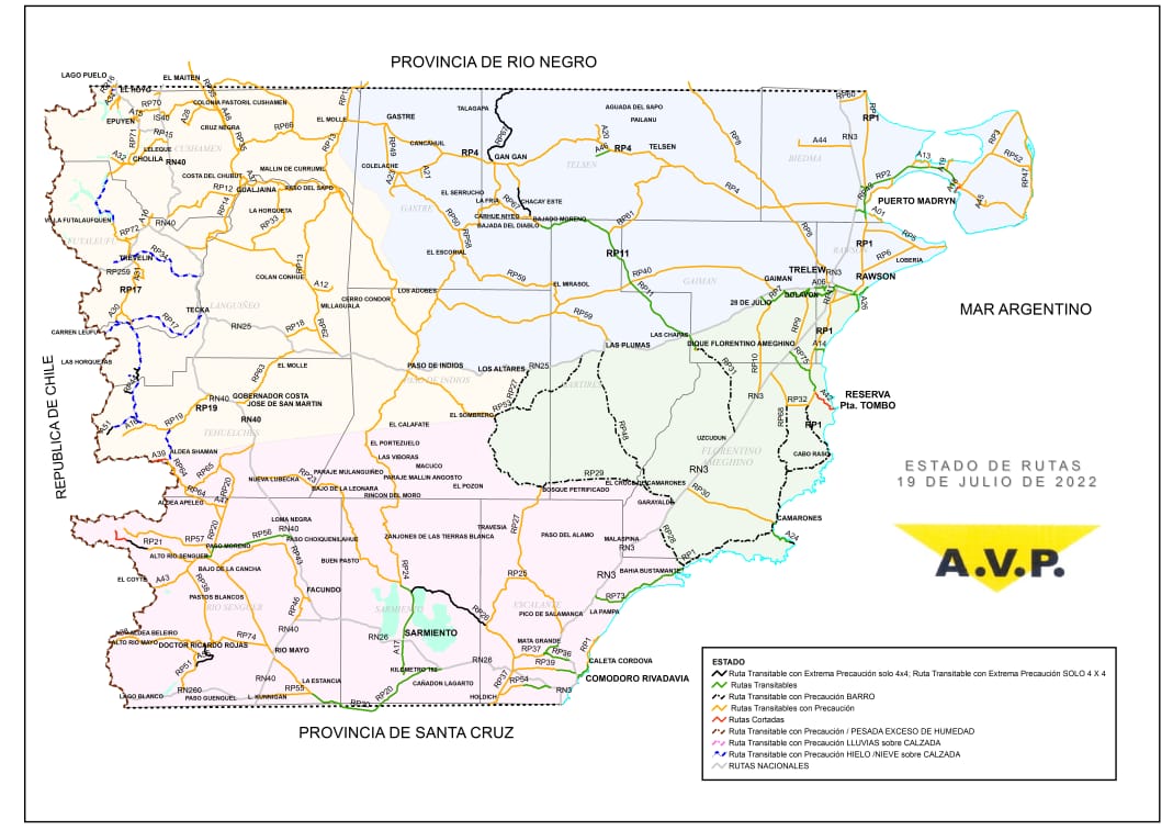 19/07/2022 Estado de la rutas de Chubut Desde la Administración de Vialidad Provincial aconsejan circular con precaución y comparten el mapa de las rutas provinciales actualizado al 19/07 a las 9 hs. Relacionado Compartir con: Califica el Artículo