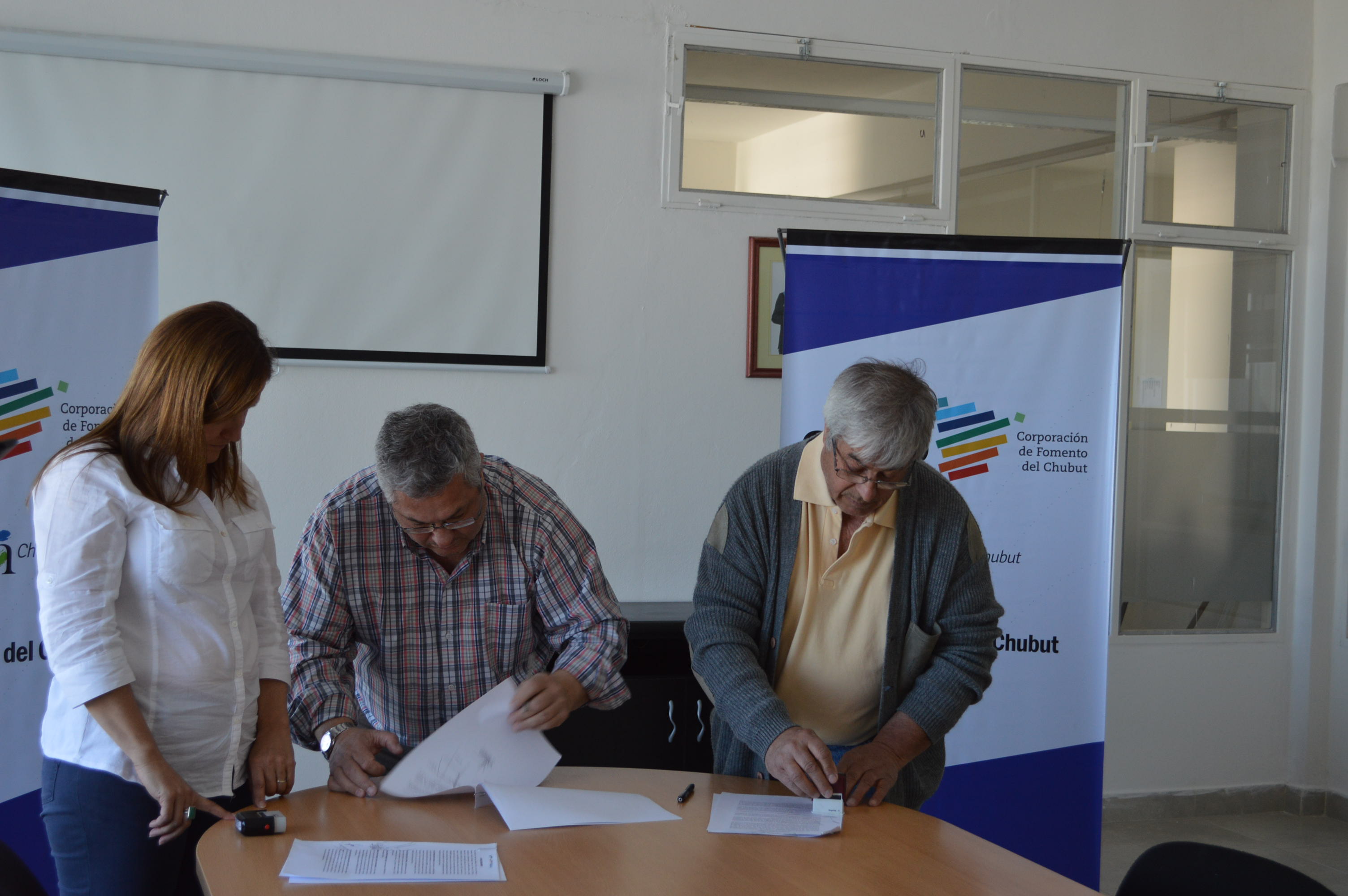 La firma se concretó en un acto desarrollado este miércoles en la sede de CORFO en Rawson, con la presencia de la gerente general del organismo, Claudia Mundet.