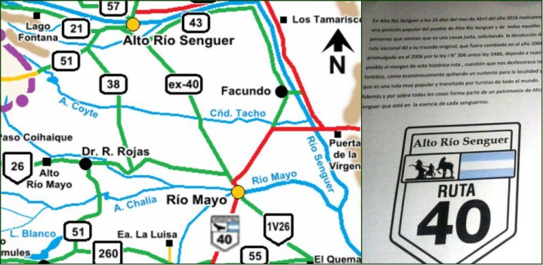 «Devuelvan la Ruta 40 a Río Senguer», así se denominó al grupo que Marcos Pérez, un vecino de Alto Río Senguer, creó en Facebook, con el único objetivo de elevar un pedido para que la Ruta Nacional N° 40 sea restituida a su trazado original, en la cual unía Río Mayo con Alto Río Senguer.