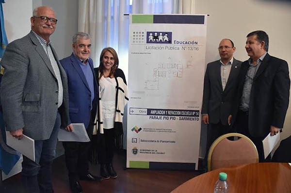 Se abrieron las ofertas para ejecutar la obra de ampliación y refacción de la Escuela Nº 14 de paraje Pío Pío en Sarmiento. Estuvo el intendente de Sarmiento, Ricardo Britapaja y la directora de la institución, Anabel Harriet. El presupuesto es de 18.567.700,00 pesos y un plazo de ejecución de 420 días corridos.