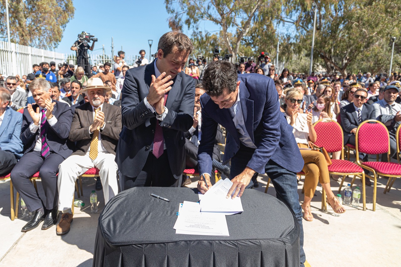 En el marco de la visita del Ministro del Interior, Eduardo De Pedro, para el 121° aniversario de la ciudad, se avanzó en la firma del convenio destinado a la obra de red y nexo colectora cloacal del B° Gesta de Malvinas, por medio del Ente Nacional de Obras Hídricas y de Saneamiento (ENOHSA). “Seguimos gestionando servicios básicos para cada sector de nuestra ciudad”, expresó Luque.