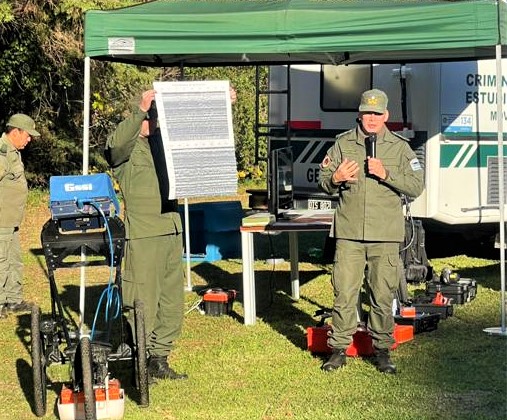 Por otra parte, durante la jornada de capacitación, se realizó en instalaciones de la sede de Prefectura Naval una instancia practica con el aprendizaje de diferentes mecanismos de intervención como el sistema de comando de incidentes, comunicaciones y logística, con el uso de diferentes tecnologías, como drones de última generación, la búsqueda de personas con perros especializados, georadar con fines de búsqueda bajo el suelo y preparación de búsqueda acuática.