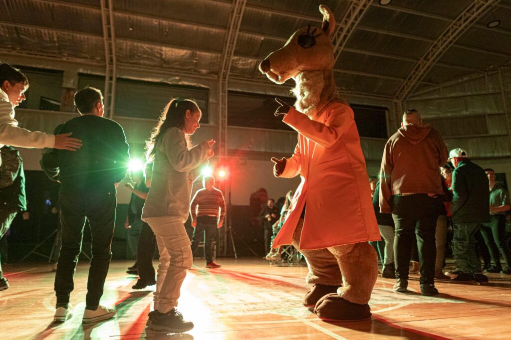 Este sábado en las últimas horas de la tarde, tuvo lugar en el gimnasio auxiliar del club Gimnasia y Esgrima, con la participación de más de 100 personas de entre 16 y 59 años de edad, una nueva edición del programa “Fiesta sin Etiquetas”, jornada que se distinguió por la música y baile, enmarcados en la temática “emociones”. Cómo novedad, los asistentes fueron recepcionados por las mascotas Aoni (Cultura), Kosch (Comodoro Deportes) y Charito, símbolo del Club Gimnasia, que también se sumaron a la diversión.