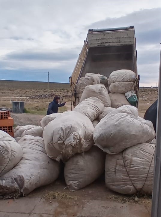 La Fibra se trasladó desde los establecimientos ganaderos de distintas localidades, y parajes, hasta galpón de acopio de “Cooperativa Vuelta al Campo”, ubicada en la localidad de Paso de Indios.