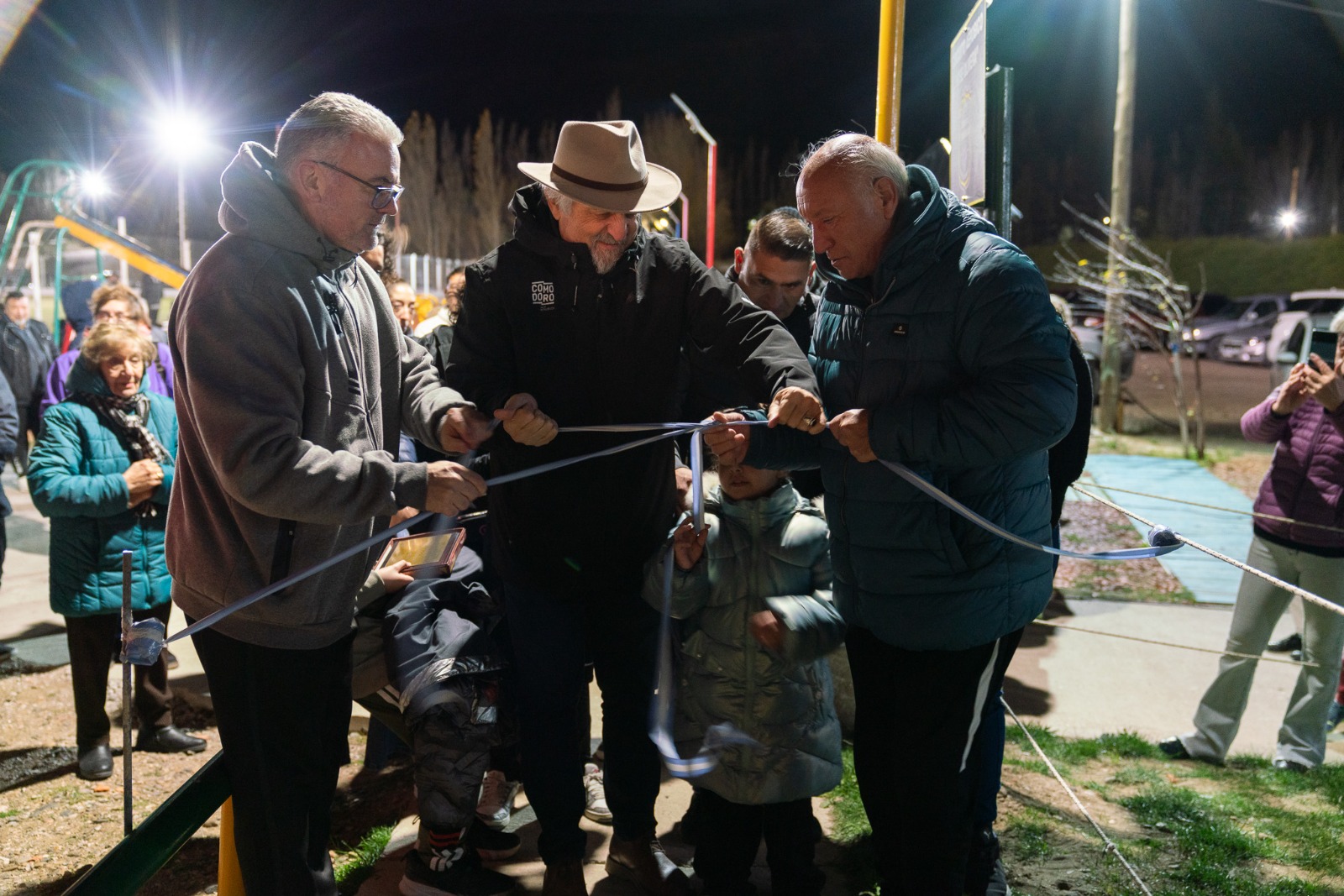 El acto de inauguración se desarrolló este viernes, en horas de la noche, con la presencia del intendente Othar Macharashvili; el titular del Ente Comodoro Deportes, Hernán Martínez; el concejal Ariel Montenegro; el presidente del Club Veteranos de Laprida, Ariel González; el responsable de la Asociación Vecinal Laprida, Roberto Romero; representantes de distintas instituciones; y vecinos del barrio. Durante la ceremonia, se reconoció a quienes colaboraron activamente con este proyecto y se le dio el nombre de “José Olivera” al circuito aeróbico, en homenaje al ex presidente y referente histórico del club.
