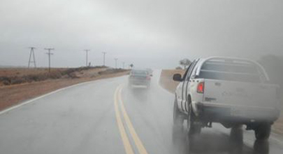 La misma situación tiene lugar en la ruta nacional 3. En Comodoro hacia el límite con Santa Cruz se encuentra la calzada húmeda, en ruta 26 hacia Sarmiento, con lluvia, bancos de neblina y animales sueltos, y hacia Garayalde y Telew también con sectores con neblina lluvia y calzada húmeda.