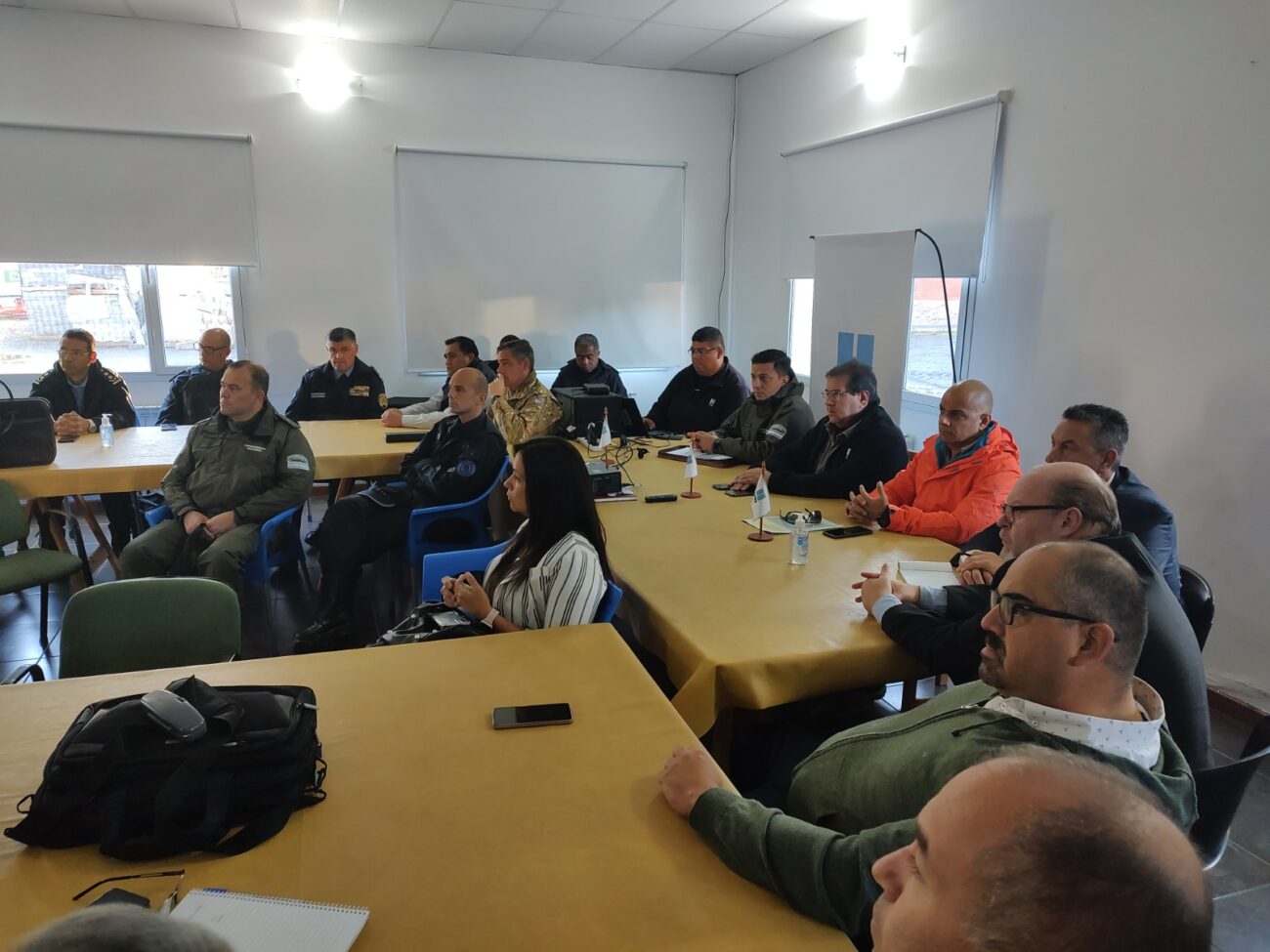 El encuentro contó con la presencia del subsecretario de Protección Civil del Chubut, José Mazzei, el subsecretario de Seguridad Vial, Comisario Néstor Siri, el Jefe de la ANV Distrito Chubut, Julios Otero, y representantes de Vialidad Provincial.