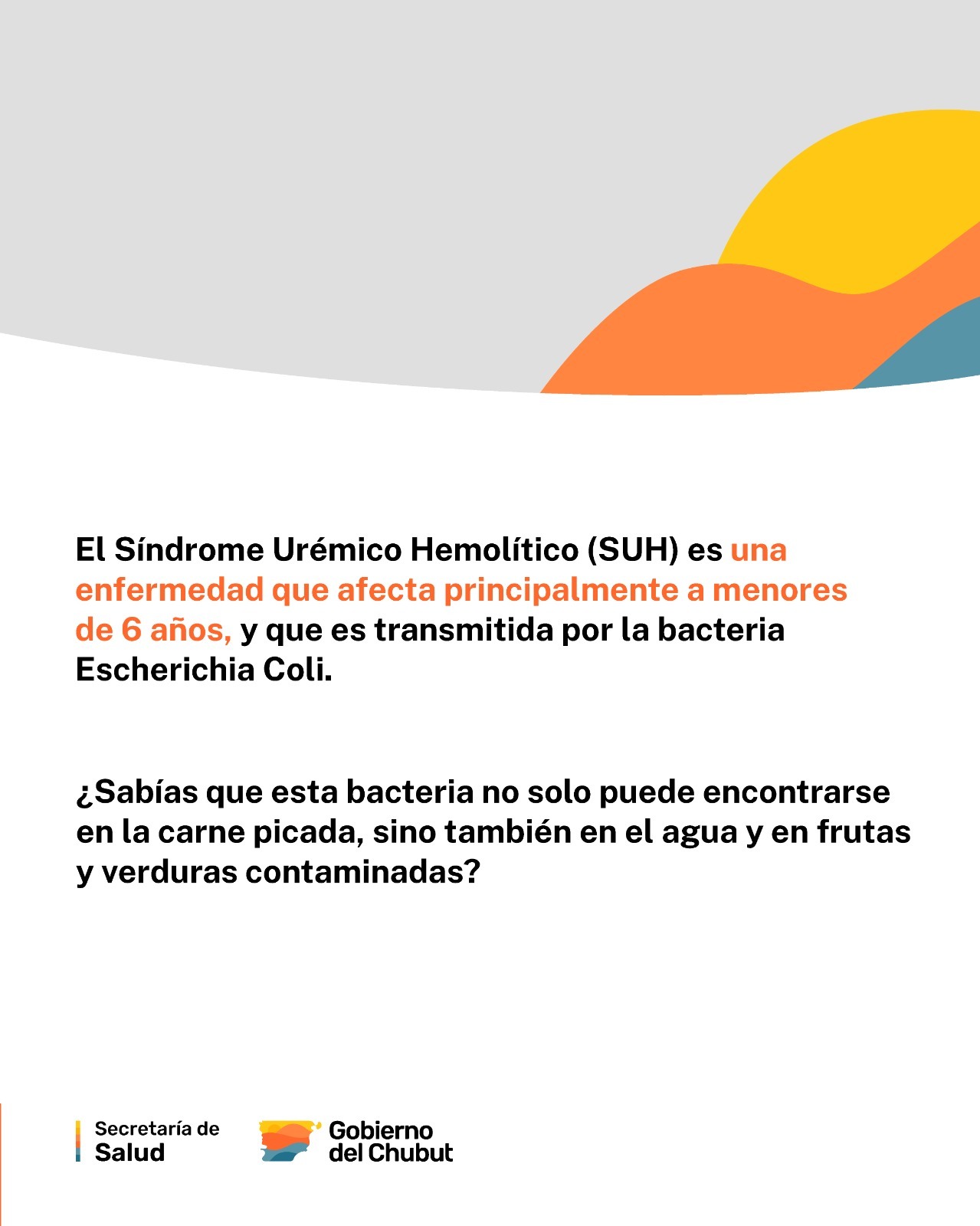 El Gobierno del Chubut realizó esta semana una nueva reunión de la Mesa Intersectorial de Trabajo sobre el Síndrome Urémico Hemolítico (SUH), de la que participaron autoridades y referentes técnicos de las Secretarías de Salud y de Ambiente y Control del Desarrollo Sustentable, el Instituto Provincial del Agua (IPA) y el Ministerio de Producción de la provincia, así como del Servicio Nacional de Sanidad y Calidad Agroalimentaria (SENASA).