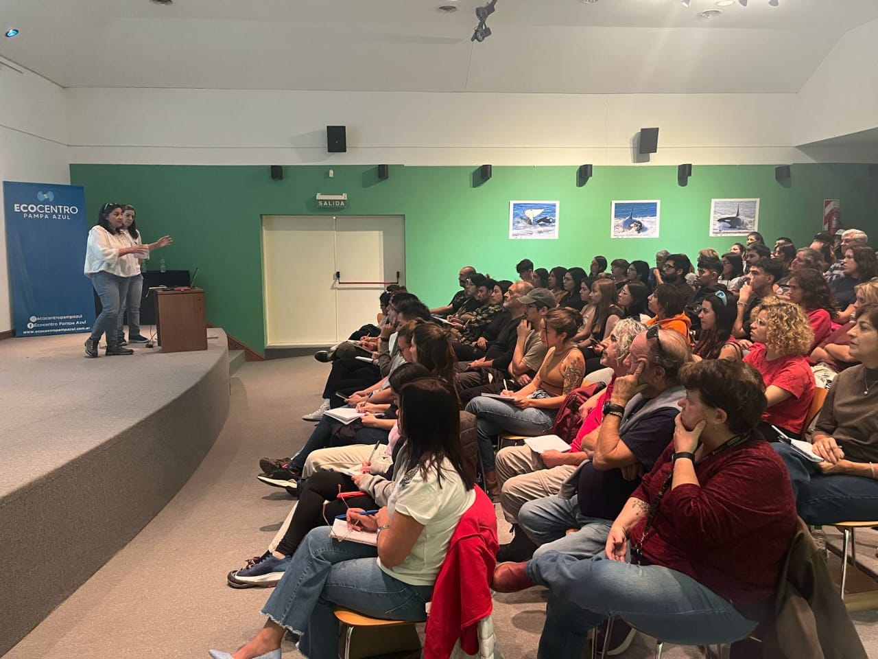 Las charlas se realizaron a sala llena en el Auditorio del Ecocentro Pampa Azul, donde los participantes pudieron interiorizarse y profundizar sobre temáticas tales como aves playeras migratorias, mamíferos marinos, gripe aviar y geomorfología.