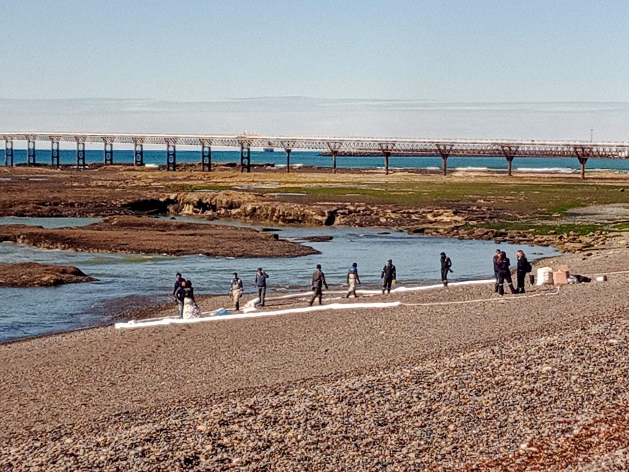 Ante la aparición de una iridiscencia en cercanías a la Terminal de Despacho de Combustible que YPF opera en Comodoro Rivadavia, el Ministerio de Ambiente y Control del Desarrollo Sustentable del Chubut, a cargo de Roberto Jure, verificó las tareas de absorción y contención de focos en las costas de dicha localidad.