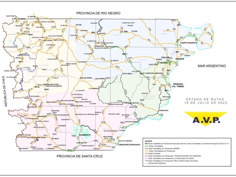 El Gobierno del Chubut restringirá la transitabilidad en las rutas nacional N° 3 en el tramo de Trelew hacia Comodoro Rivadavia, la ruta nacional N° 25 desde Dolavon hasta Tecka en su totalidad a partir de las 19 horas del viernes hasta las 8:00 del día posterior, ante el pronóstico de precipitaciones y nieve durante el fin de semana. En tanto, la ruta nacional 40 desde Esquel hacia el norte está habilitada.