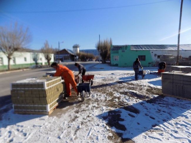 Desde la Secretaria de Obras Publicas de la Municipalidad de Río Mayo se continúa avanzando en las obras de refacción y embellecimiento de la Plaza San Martin. Los trabajas se realizan con mano de obra local y consisten en dos canteros grandes, playón de actos, reloj, perímetro al menuco, veredas perimetrales, puente con piso de malla metálica y barandas metálicas, entre otras cosas.