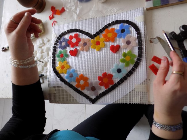Avanzan los murales de corazones a cargo de las alumnas del taller de mosaiquizmo de la localidad de Río Mayo, en homenaje al Dr. RENÉ FAVALORO (1923-2000). Los cuales serán colocados en el Centro de Kinesiologia José María Sáez. El taller lo dicta la Profesora Jorgelina Scarafiocca en las instalaciones de la Secretaría de Cultura de Río Mayo.