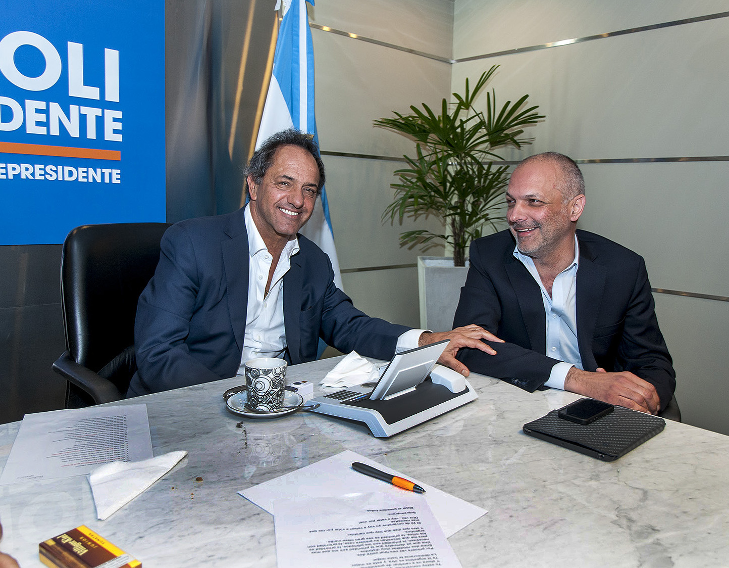 El gobernador Martín Buzzi estuvo junto al candidato presidencial del Frente para la Victoria y participó de un encuentro de trabajo con sus equipos de campaña.