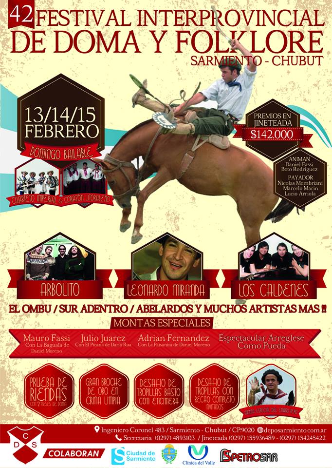 Este martes se llevó adelante la presentación del Festival Interprovincial de la Doma y el Folcklore, organizada por el Club Deportivo Sarmiento. La Directora de Prensa, Ceremonial y Protocolo de la Municipalidad de Sarmiento, Graciela Núñez, acompañó al Presidente del Club Carlos Ludden, quien acompañado por Luis Muñoz, integrante de la Comisión Directiva, presentó, la 42º edición de la fiesta que convoca a miles de personas todos los años.