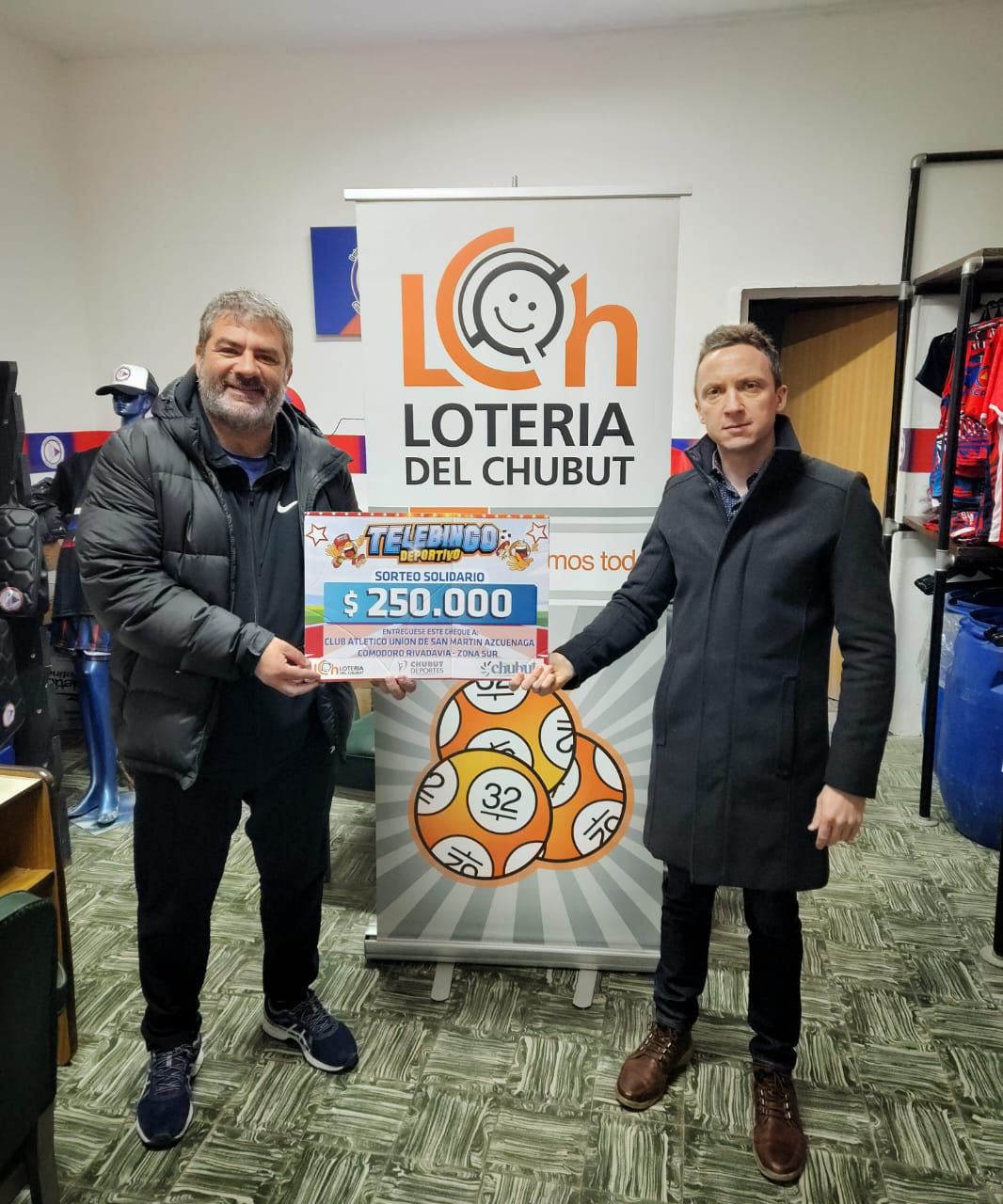 El Club Atlético Unión San Martín Azcuénaga -ubicado al norte de la ciudad de Comodoro Rivadavia- recibió 250.000 pesos en efectivo por ser uno de los seis entidades deportivas ganadoras del Sorteo especial del Telebingo Deportivo, que se llevó a cabo el domingo 26 de junio.