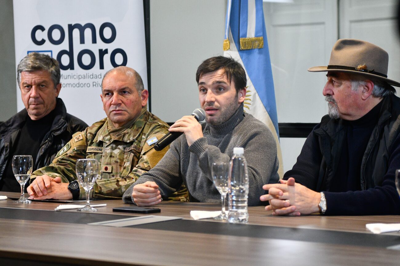El titular del Ejecutivo provincial estuvo acompañado por el vicegobernador, Gustavo Menna; el intendente de Comodoro Rivadavia, Othar Macharashvili, el ministro de Seguridad y Justicia de la provincia, Héctor Iturrioz; el Coronel Mayor, y actual comandante de la IX Brigada Mecanizada del Ejército, Claudio Cervigni; el subsecretario de Protección Civil, Eduardo “Lalo” Perez; y el comandante de Gendarmería, Gustavo Gómez.