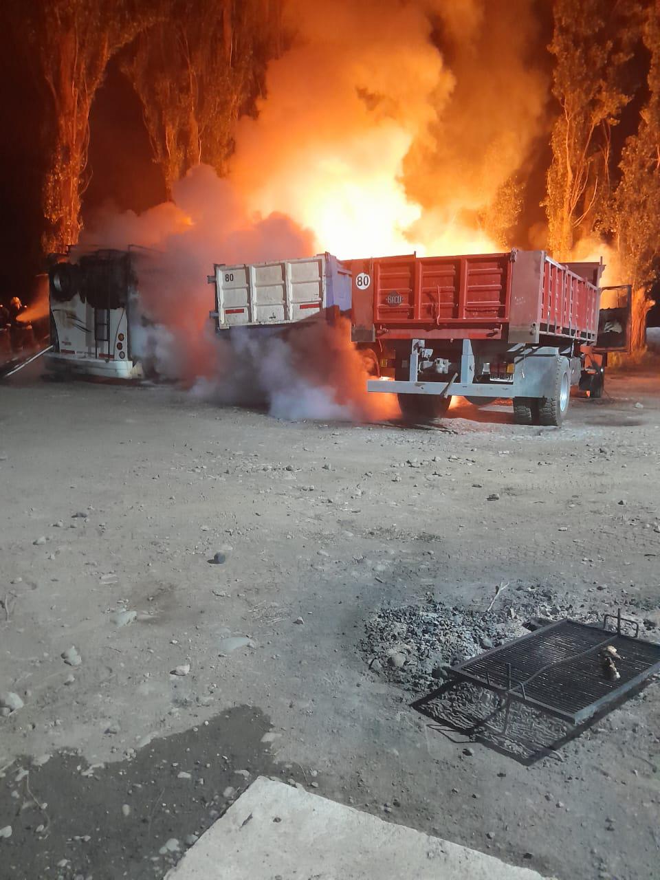 Sobre la madrugada de este sábado, la Policía del Chubut y bomberos voluntarios intervinieron en un atentado perpetrado en la estancia Amancay por un grupo de desconocidos, que incendiaron una retropala, una retroexcavadora y una minicargadora, además de un motorhome y tres camiones.