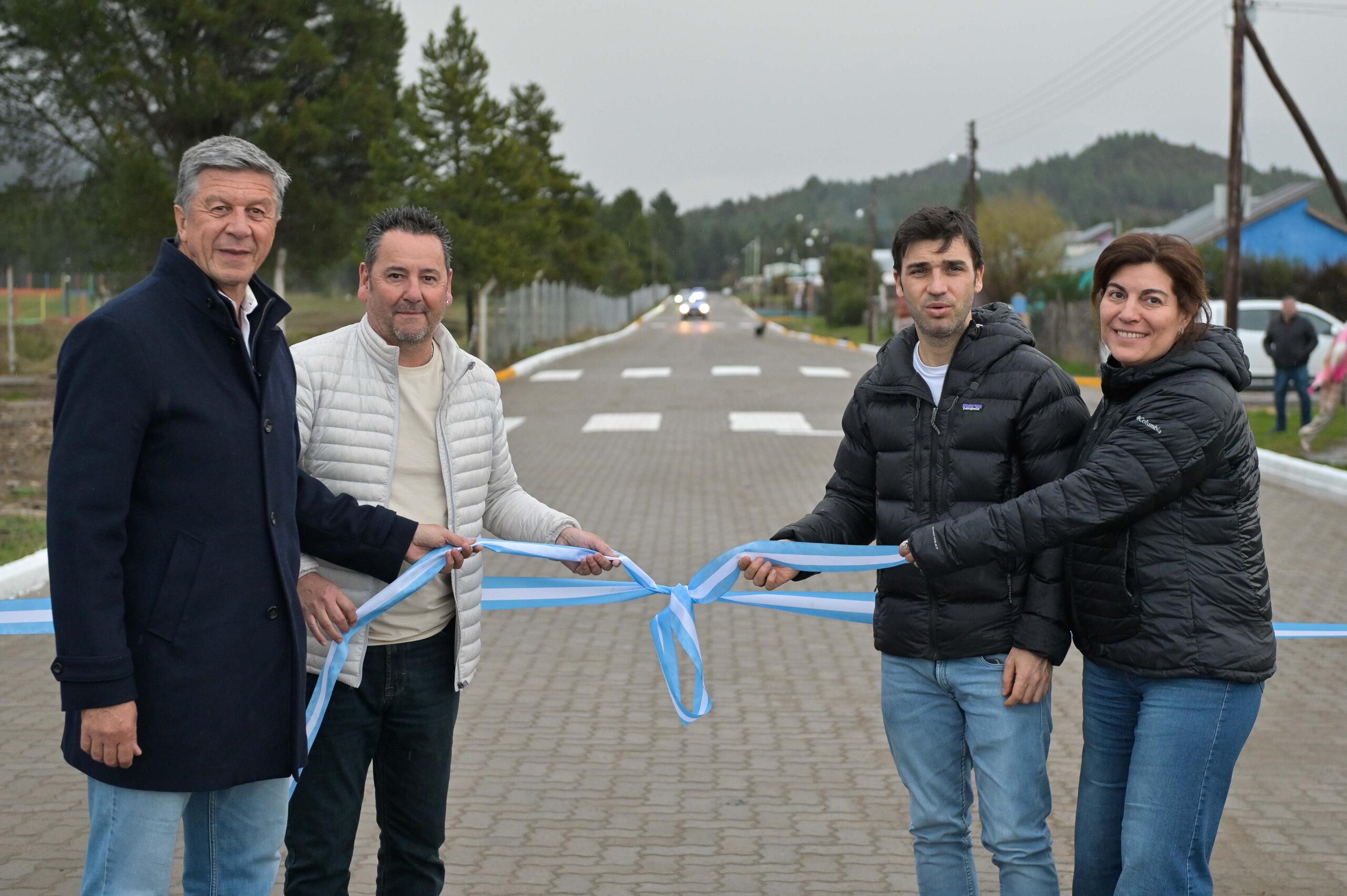 Torres también inauguró la obra de pavimentación de la calle Los Pinos, entre Francisco Torres y Perito Moreno. Se trata de una de las principales arterias de la localidad de Corcovado, para la cual se utilizaron 78.400 adoquines de hormigón premoldeado. La obra, que mejorará sustancialmente la transitabilidad en dicho sector, fue ejecutada con mano de obra local en su totalidad.