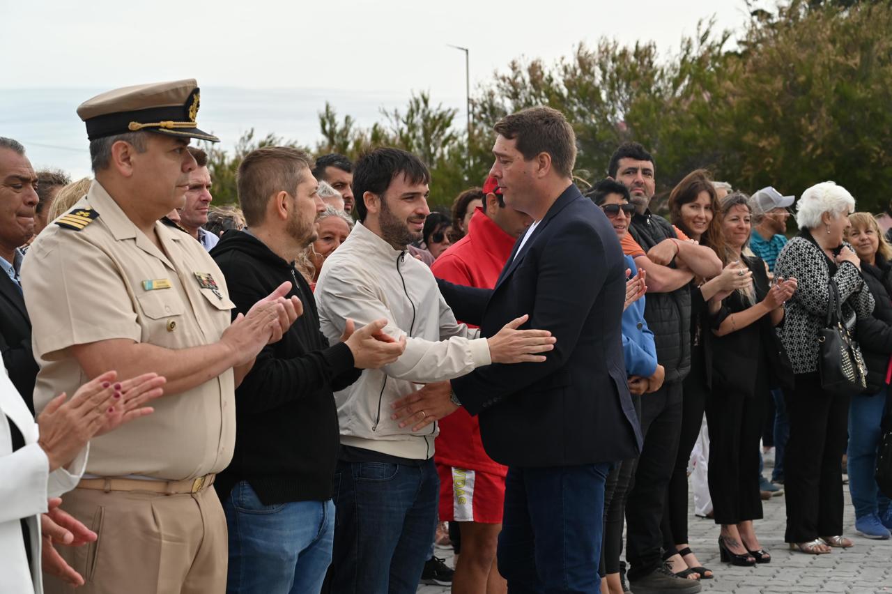 Acompañando al Gobernador, estuvieron presentes asimismo funcionarios del ejecutivo provincial, personal del municipio, oficiales de Prefectura, representantes del cuerpo de guardavidas de Rawson y vecinos del lugar, quienes participaron de la ceremonia en la cual fue instalada dicha “cápsula del tiempo”, en cuyo interior se guardan mensajes que serán descubiertos en el año 2123, para celebrar el bicentenario de la villa balnearia.
