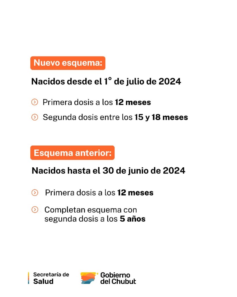 Los nacidos a partir del 1° de julio de 2024, se incorporan al nuevo esquema. Luego de la primera dosis que se aplica a los 12 meses, recibirán la segunda entre los 15 y 18 meses y no recibirán dosis a los 5 años.
