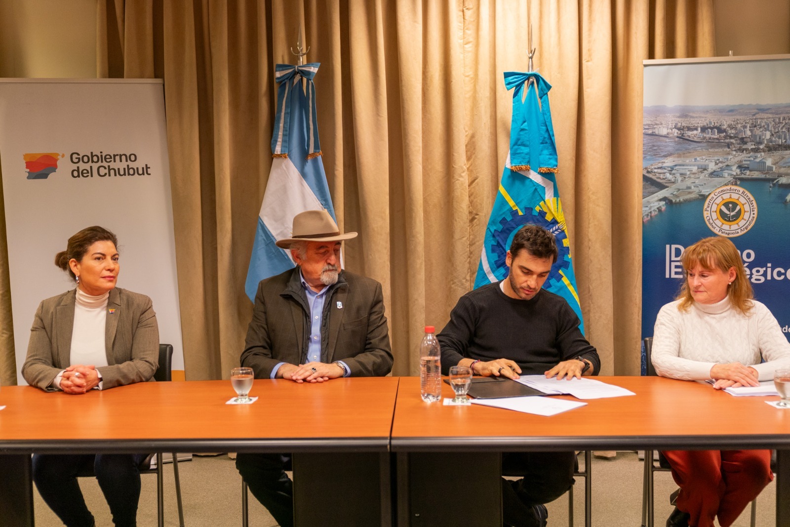 Este jueves, en el auditorio del Senasa, ubicado en el Puerto, tuvo lugar la firma del contrato para iniciar las obras de reparación y puesta en condiciones del astillero. De la actividad participaron el intendente Othar Macharashvili; el gobernador Ignacio Torres; la diputada nacional Ana Clara Romero; la intendenta de Rada Tilly, Mariel Peralta; la administradora del Puerto, Digna Hernando; el presidente del Directorio de Astillero Patagonia Naval, Gonzalo Devivo García; y el secretario general de la UOCRA Comodoro Rivadavia, Raúl Silva. Además, estuvieron presentes miembros del gabinete municipal; concejales; legisladores y funcionarios provinciales; representantes gremiales y jefes de las Fuerzas de Seguridad.